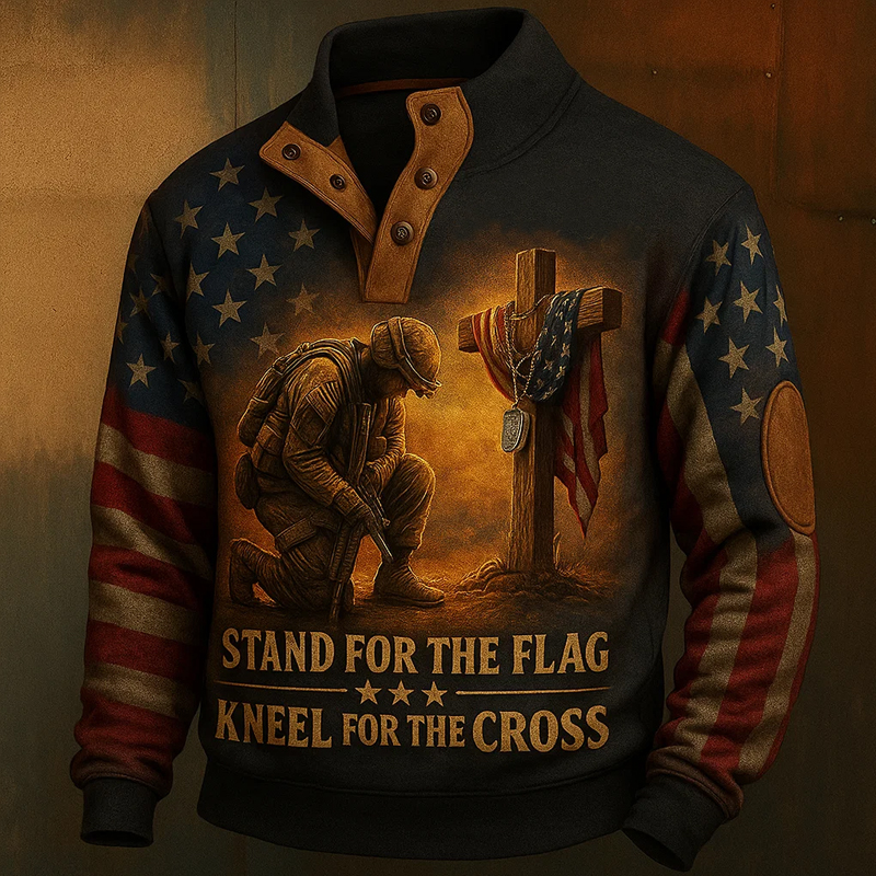 Men's Winter Retro Color Block Motorcycle Distressed Buffalo Soldier Print Hooded Top
