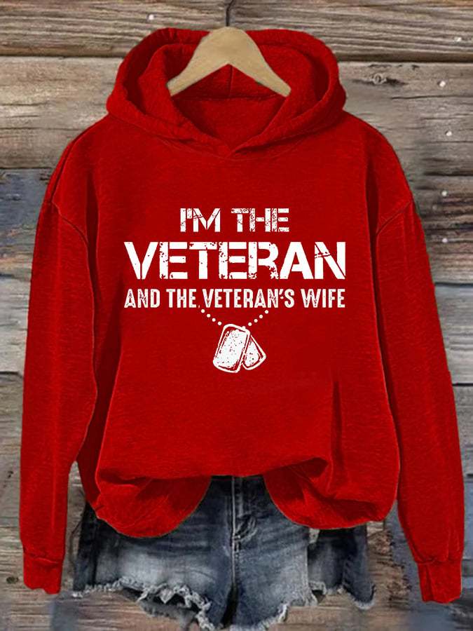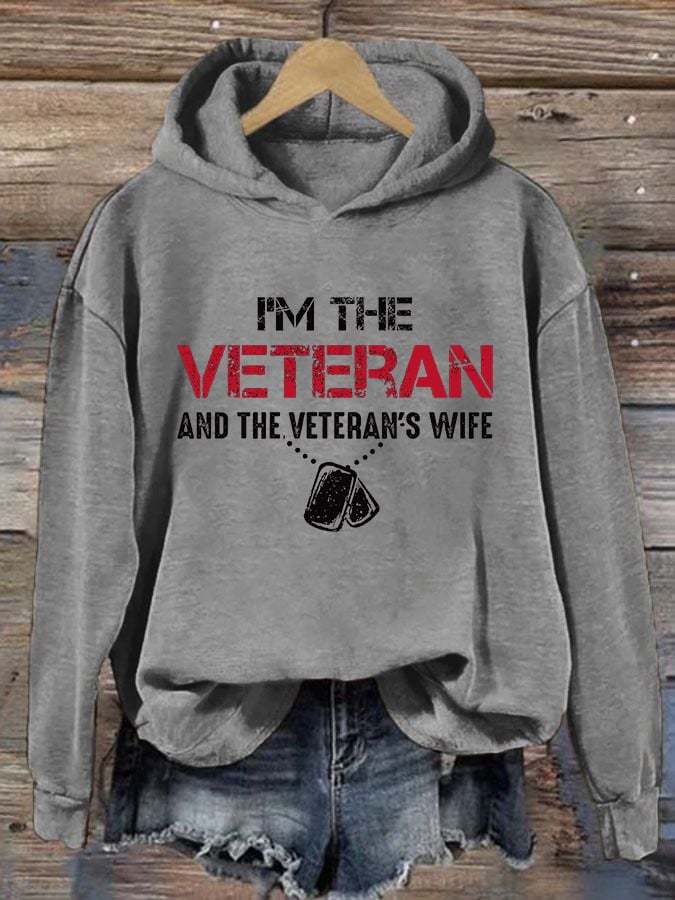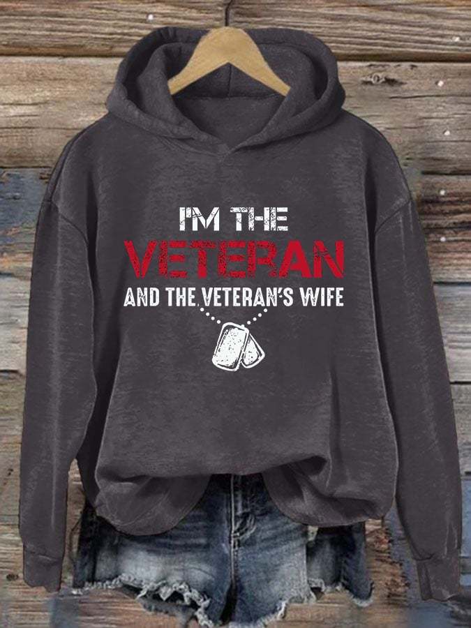 Women's I'm A Veteran And The Veteran's Wife Printed Casual Hoodie