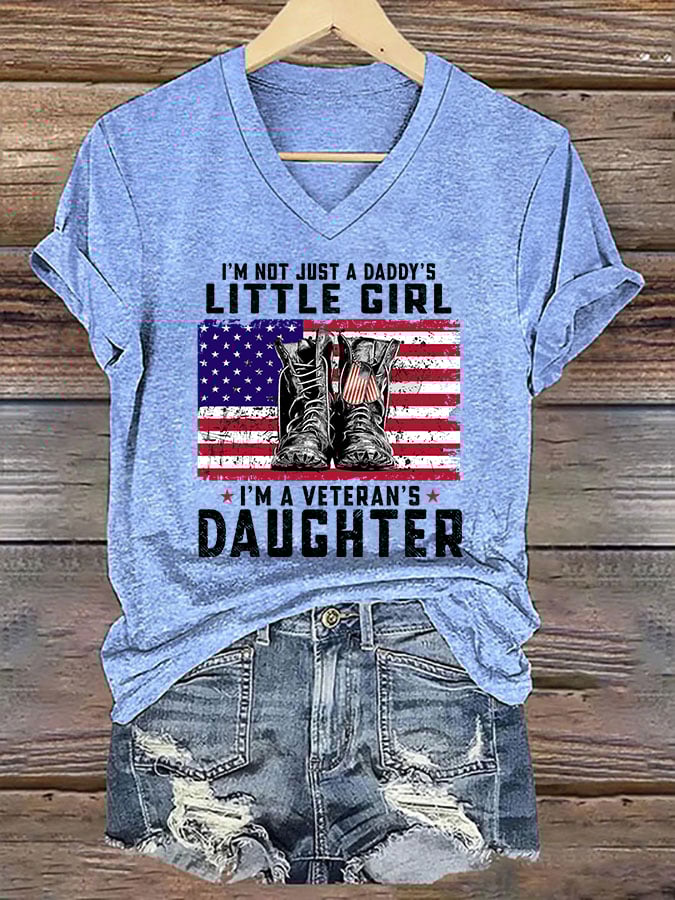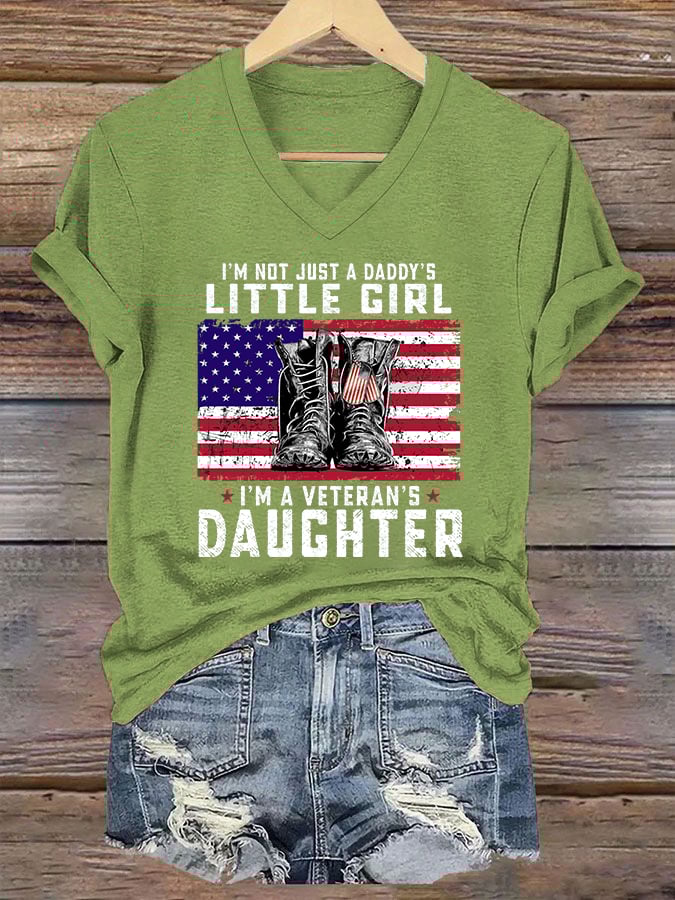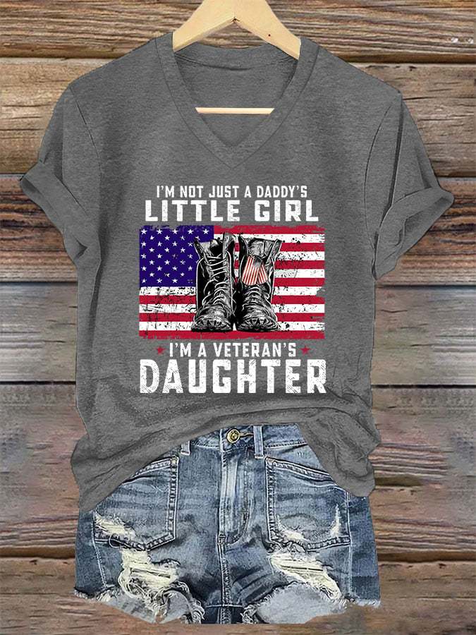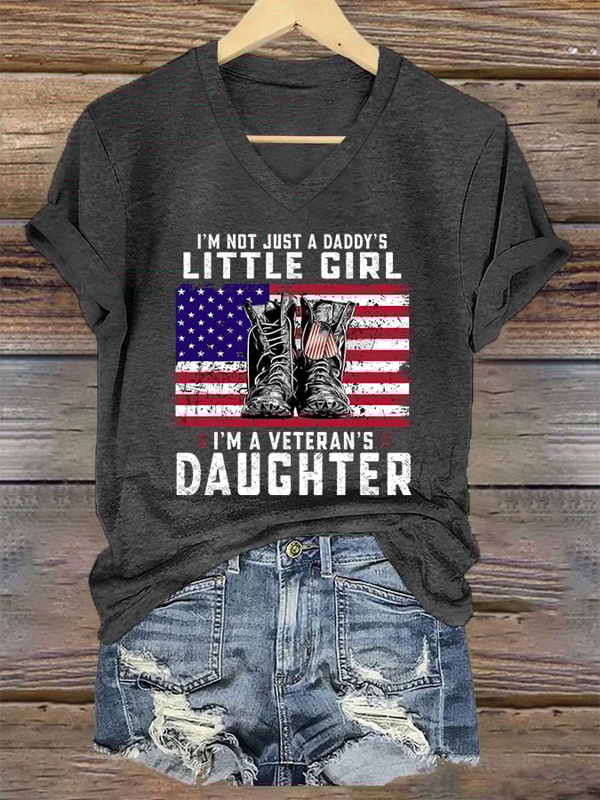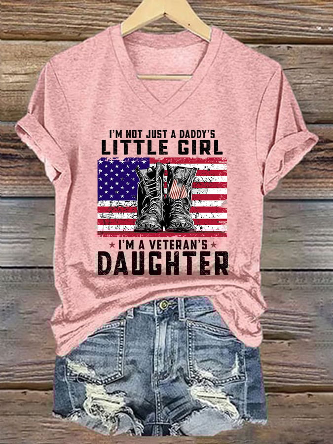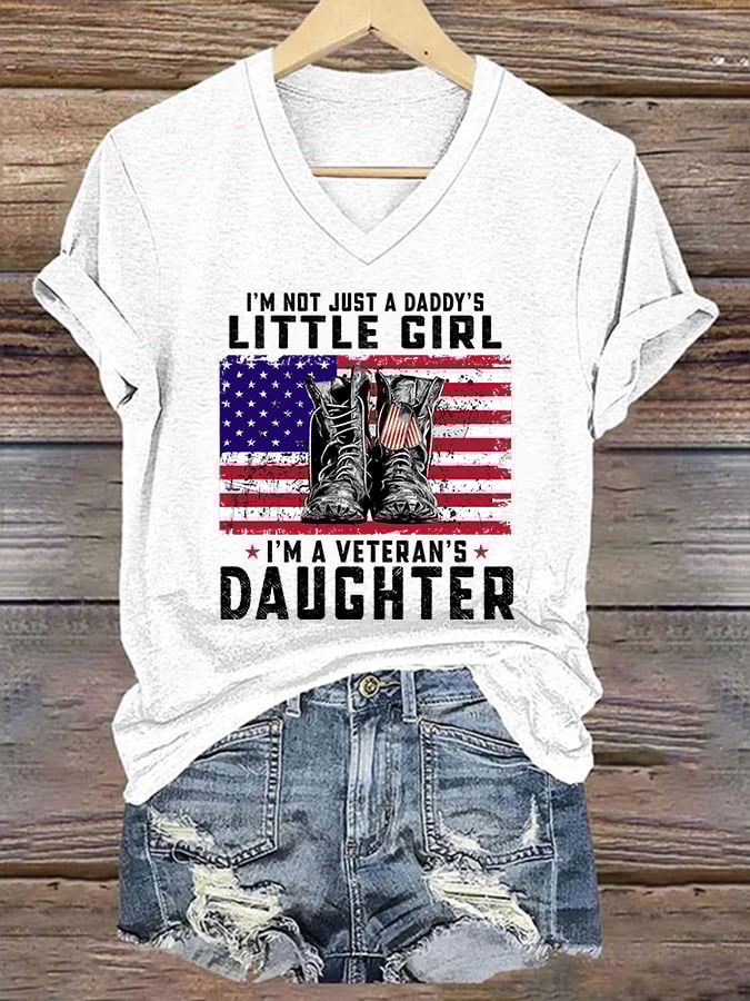 Women's I'm Not Just Daddy's Girl I'm A Veteran's Daughter Printed Casual V-Neck T-Shirt