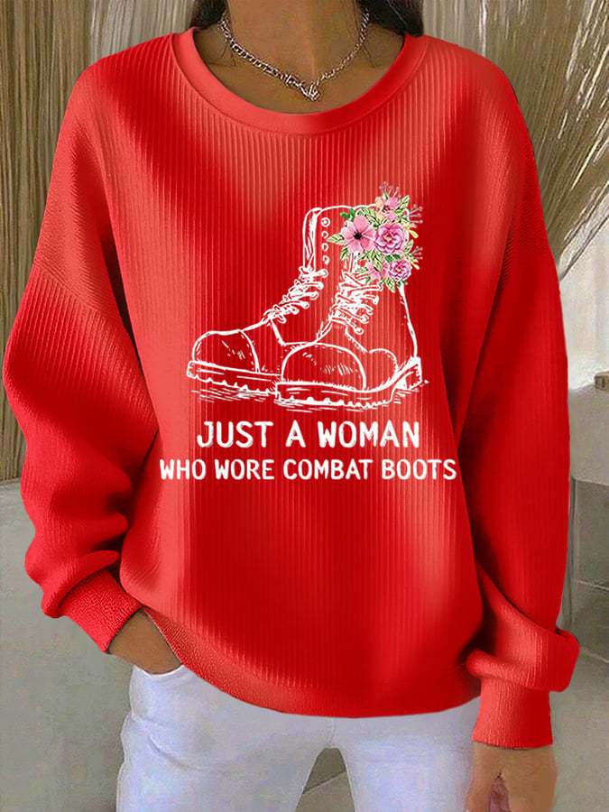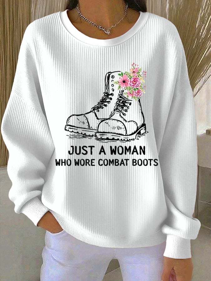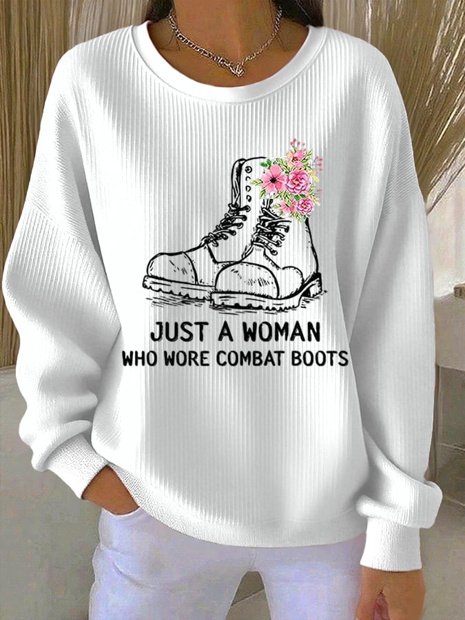 Women's Just A Woman Who Wore Combat Boots Print Round Neck Sweatshirt
