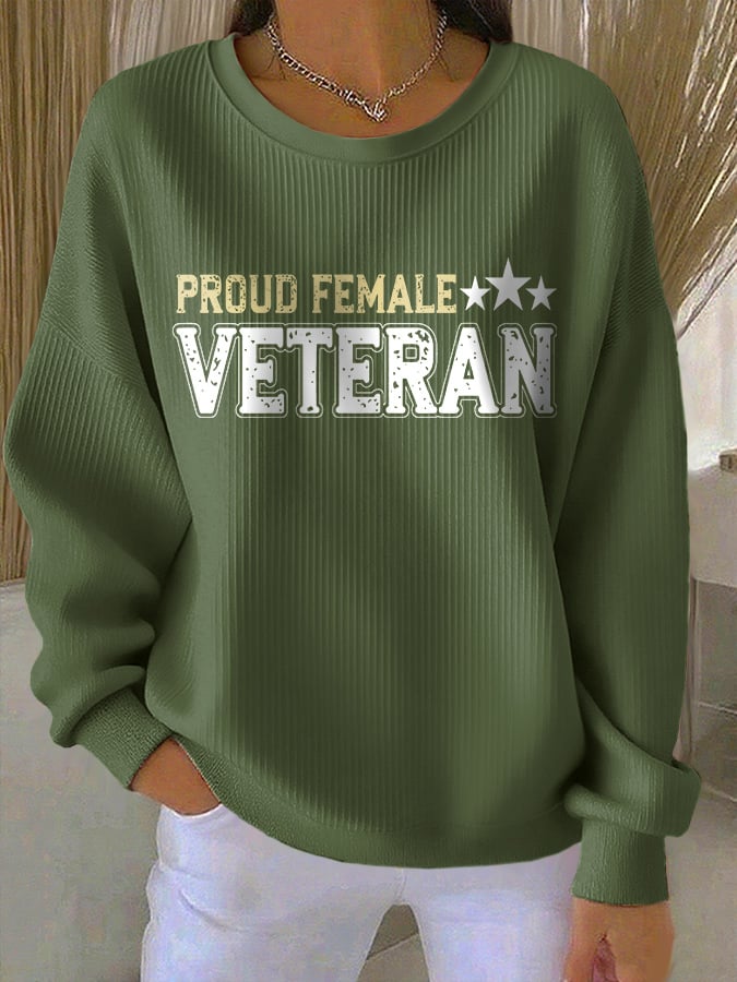 Women's Proud Female Veteran Print Round Neck Sweatshirt